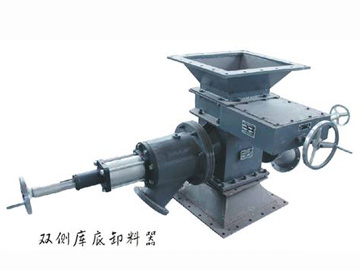 该设备用于粉料贮仓底部或侧面卸料用,设备带有流化装置,卸料时能使物料流态化排出,通过输送管道或斜槽,配合散装机直接装料,该系统有气动和手动两种控制方式,气动用电磁阀控制气缸伸缩运动,实现卸料阀门的启闭;手动为转动手轮启闭阀门。