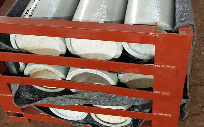 陶瓷贴片耐磨管内镶防脱落陶瓷片或防脱落加固陶瓷片,用胶粘接在外部的钢管上。防脱落陶瓷片本身三面成压与被压状态,保证瓷片不脱落。防脱落加固陶瓷片中心孔可以装一锥形稳固片,且与外部钢件焊接成一体,又一次保障了瓷片的稳固。